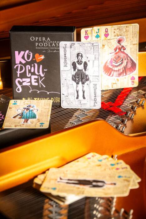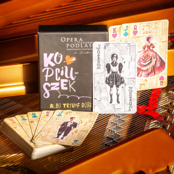 Talia kart do gry w pudełku z limitowanej edycji gadżetów do spektaklu „KOPCIUSZEK ALBO TRYUMF DOBROCI”