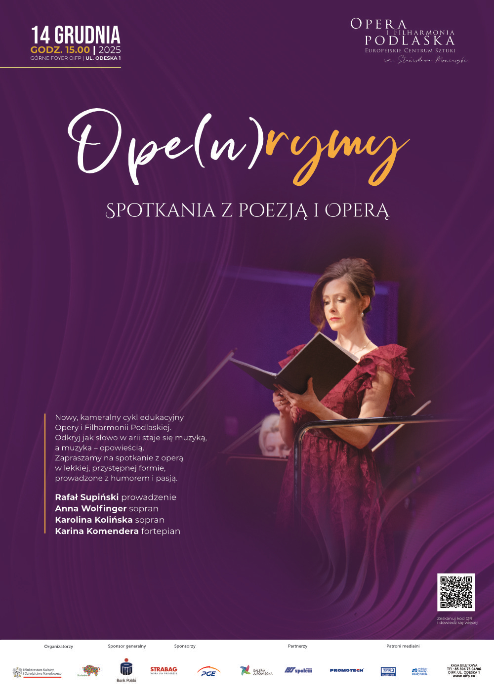 Opera is poetry that lives in sound. Words and music in opera form an inseparable whole – only together do they produce an emotion that soars above text and melody. OPE(N)RYMY is a new, intimate educational series from the Podlasie Opera and Philharmonic, in which we show how words in an aria become music, and music becomes a story. This is a short encounter with opera in a light, accessible format, conducted with humor and passion. The program will feature arias performed live and short anecdotes about how operatic emotion is created – from poetic text, through phrasing, to the soloist’s interpretation.