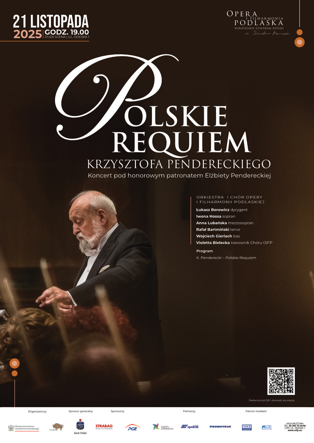 We cordially invite you to this unique concert featuring outstanding soloists: Iwona Hossa (soprano), Anna Lubańska (mezzo-soprano), Rafał Bartmiński (tenor), Wojciech Gierlach (bass) and the Orchestra and Choir of the Podlasie Opera and Philharmonic under the direction of Maestro Łukasz Borowicz.