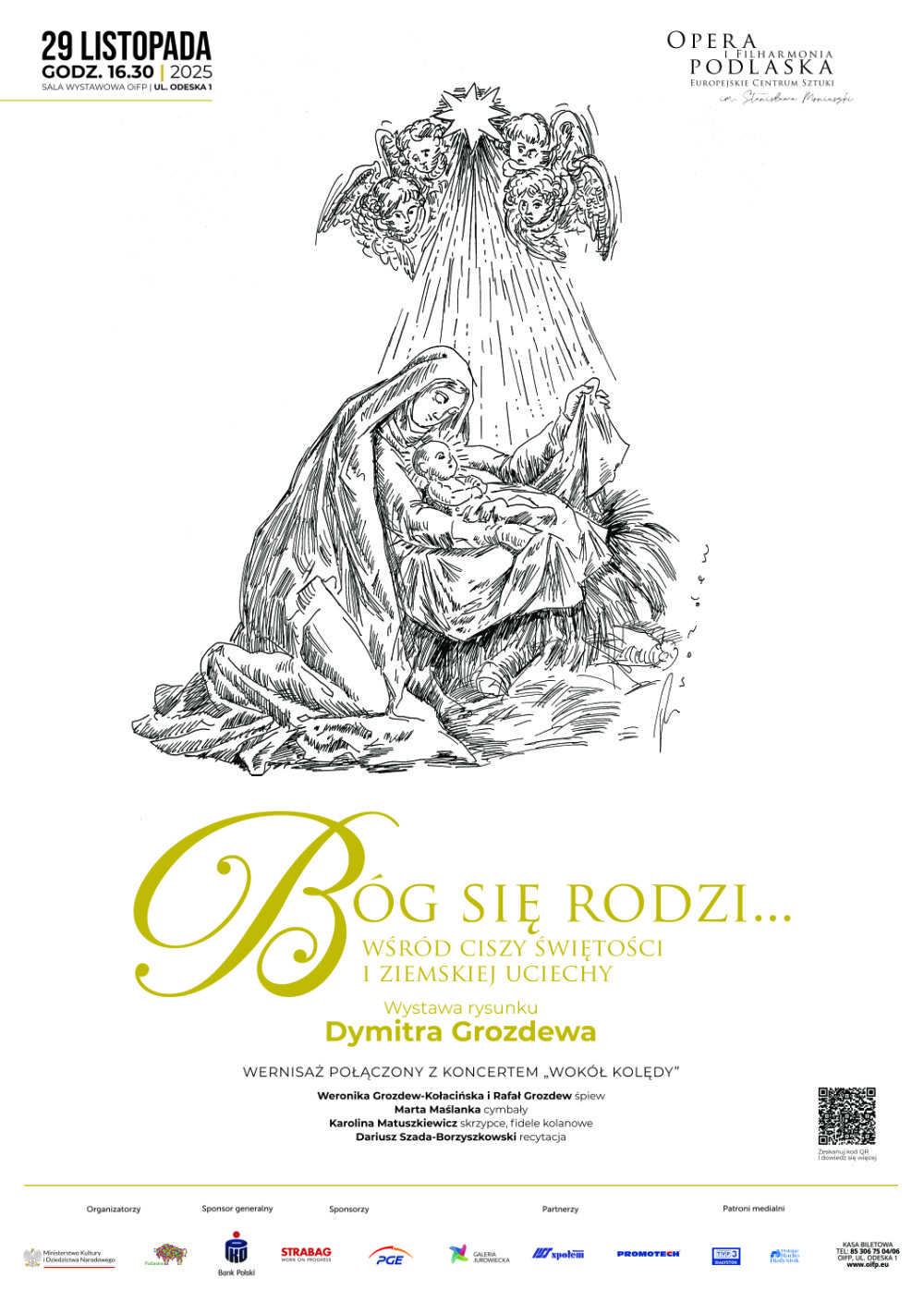 Część z prezentowanych ilustracji tworzyła szatę graficzną do wydawnictw książkowych, większość powstawała jednak z potrzeby serca i często stanowiła okrasę rodzinnego świętowania przy wigilijnym stole. Rysunki mają też silny związek z miejscami bliskimi Artyście, z domami rodzinnymi – bułgarskim szopskim i polskim podlaskim. Ilustracje przedstawiające polskich szlachciców, żydowskich cymbalistów, bułgarskich tradycyjnych tancerzy nawiązują do kultury tych miejsc. Pieśń o Narodzeniu Pańskim, czyli kolęda Bóg się rodzi w rytmie poloneza zabrzmiała przecież po raz pierwszy w Białymstoku, jednym z najsłynniejszych obrazów w polskiej literaturze jest wymowny w swojej historycznej metaforyce „koncert Jankiela”, taneczne korowody to z kolei domena bułgarskiego kolędowania. Rysunki Dymitra Grozdewa układają się w opowieść o przeżywaniu Narodzenia Pańskiego, o świętowaniu, które ma różne oblicza, a przede wszystkim o Bogu narodzonym z ziemskiej Matki, który „wszedł między lud ukochany, dzieląc z nim trudy i znoje”.